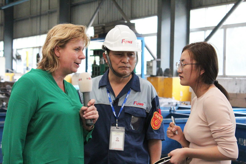 NOS駐東亞記者費瑪麗女士一行三人,先后到訪了位于佛山順德的富華集裝箱制造基地以及臺山的富華重工制造基地。