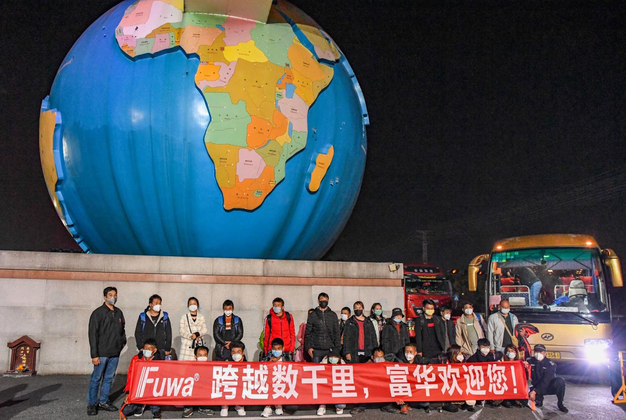 2月25日凌晨?jī)牲c(diǎn)時(shí)分,一輛載著25名富華員工的大巴車(chē)安全抵達(dá)廣東富華機(jī)械裝備制造有限公司。員工們背滿(mǎn)行李,身顯疲憊地走下車(chē),雖然已是深夜但大家依舊面帶笑容?!案兄x公司不遠(yuǎn)千里接我們回來(lái),真的非常感謝!”一位戴著帽子皮膚黝黑的員工激動(dòng)地說(shuō)到。