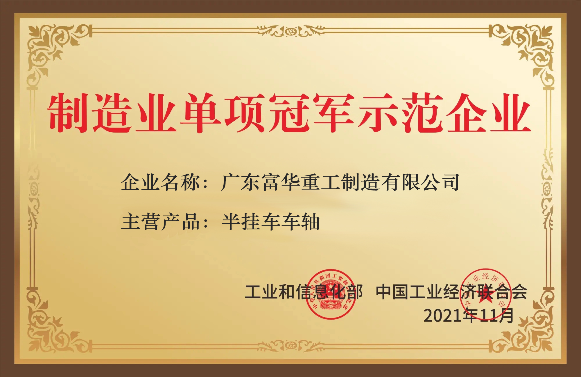 近日,國(guó)家工信部發(fā)布了最新一批制造業(yè)單項(xiàng)冠軍企業(yè)名單,廣東富華重工制造有限公司“掛車車軸”榮耀在列。成為制造業(yè)單項(xiàng)冠軍示范企業(yè),彰顯了富華重工高端商用車行走機(jī)構(gòu)制造的硬核實(shí)力。